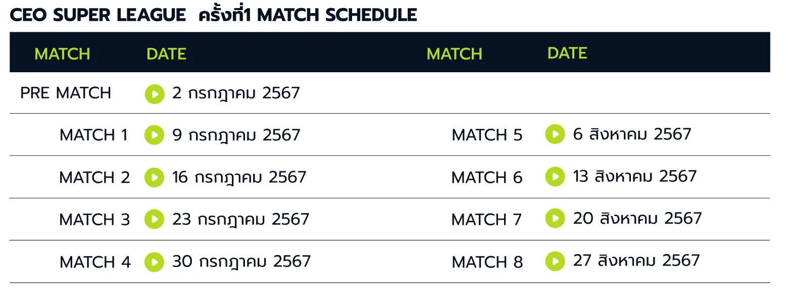 CEO SUPER LEAGUE MATCH SCHEDULE